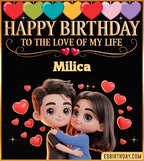 Send your affection with these lovely romantic Happy Birthday my love Milica GIF. Get your dear ones our best unique animated heart, desserts, and flower GIF on their special day.