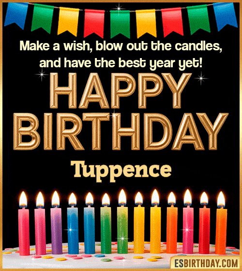 Gif with music and nameIf you're fond of these personalized birthday gifs with the name Tuppence , you can easily download them. Just choose the one you like best and then click the green 'DOWNLOAD GIF' button. Doing so will download it to your device, and you can then send it to the person whose birthday it is.